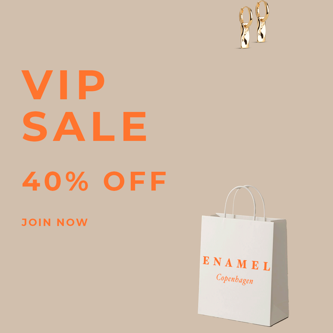 Velkommen til vores unikke VIP SALE, hvor du som nyhedsbrevsmodtager får en helt særlig mulighed for at shoppe et udvalg af ENAMEL Copenhagen smykker med op til 40% rabat, før alle andre får adgang. Dette eksklusive tilbud er skabt til dig, der elsker tidløse designs med et moderne udtryk, og som ønsker at gøre en fantastisk handel på kvalitetsprodukter, der kan pifte ethvert outfit op.