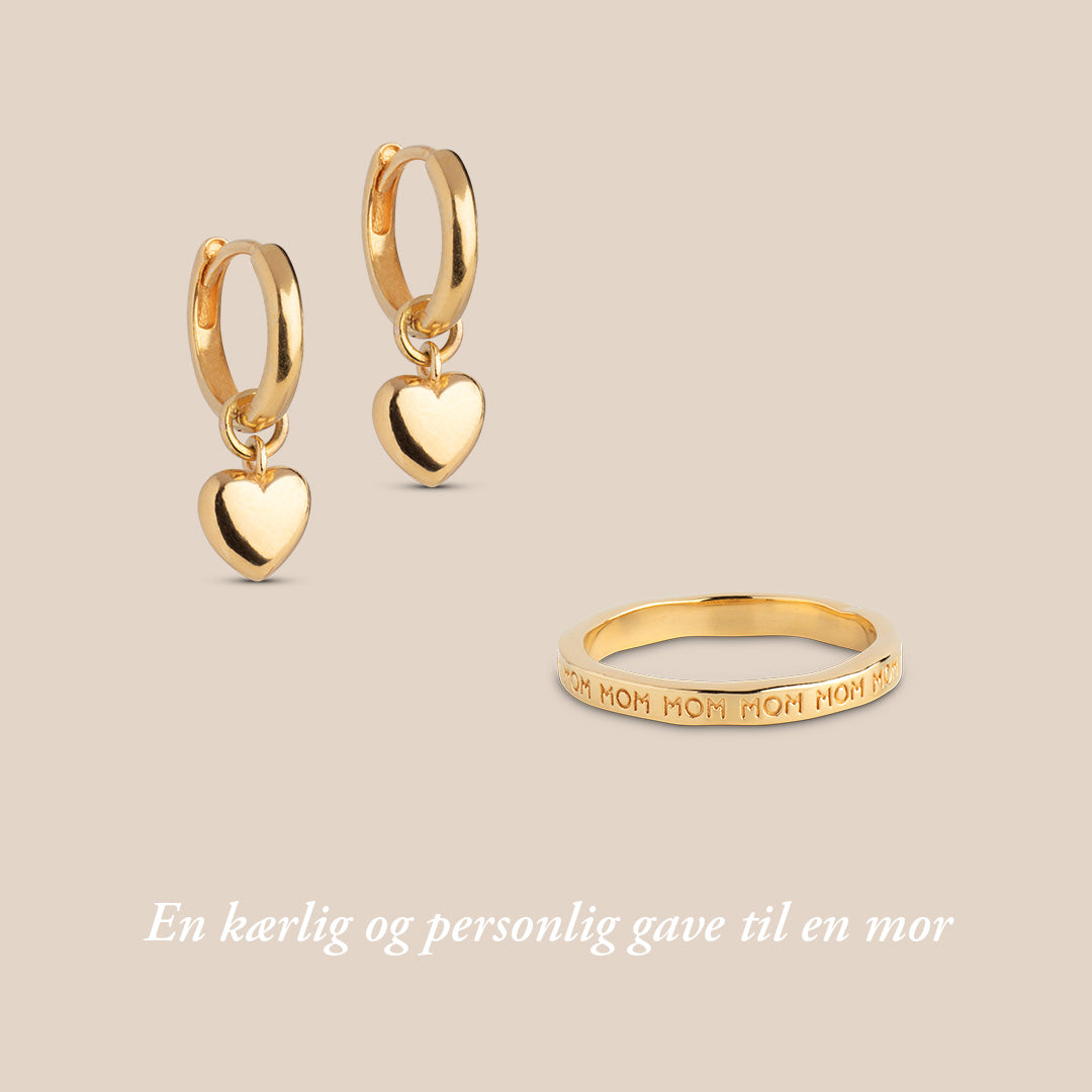 Amore Hoops og MOM Ring er samlet i et smykkesæt, der forener et klassisk hjerte med et personligt statement. En fin gaveidé til mor – eller en, der betyder lidt ekstra.