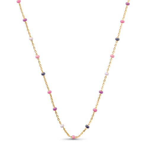 Lola armbåndet i farven Bloom består af nøje udvalgte lilla og lyserøde nuancer, der alle er en del af forårets sprudlende, og farverige natur. Lola armbåndet i farven Bloom består af nøje udvalgte lilla og lyserøde nuancer, der alle er en del af forårets sprudlende, og farverige natur. Lola armbånd er en fin kæde med små farvede emaljer. Armbåndet giver en fin, farverig detalje, og kan perfekt kombineres med flere armbånd. Findes i flere farver. Obs: Vær opmærksom på IKKE at bære vores Lola styles i bad, når du sover og for tæt på parfumer og cremer, da emaljen kan ændre farve og struktur.
