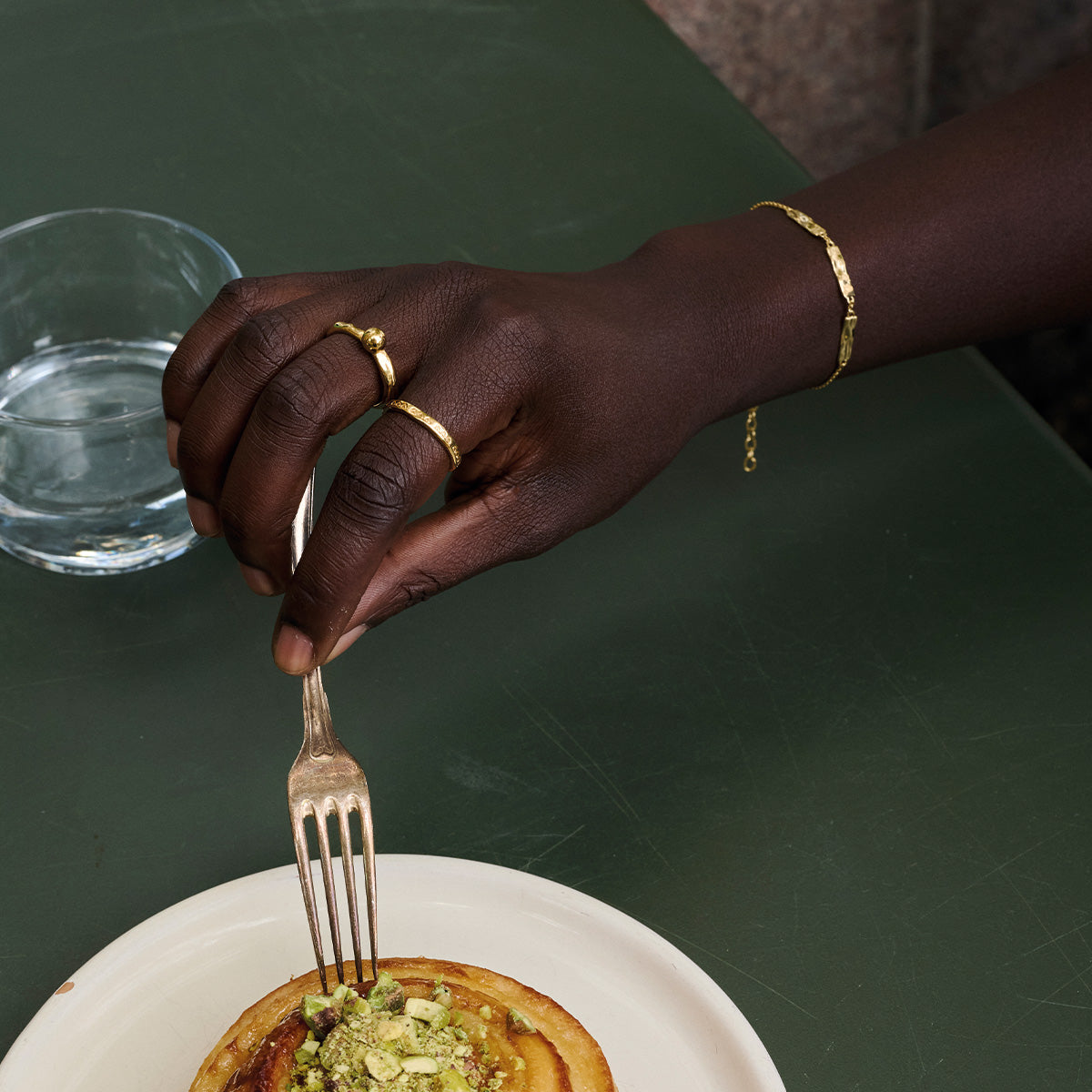 Om smykket: Tula Bracelet er et stilrent og edgy armbånd med aflange, hamrede led, der giver smykket et unikt og moderne udtryk. Det er både råt og elegant – perfekt til at bære alene eller sammen med dine øvrige favoritter. Vil du fuldende udtrykket? Tula fås også som halskæde."