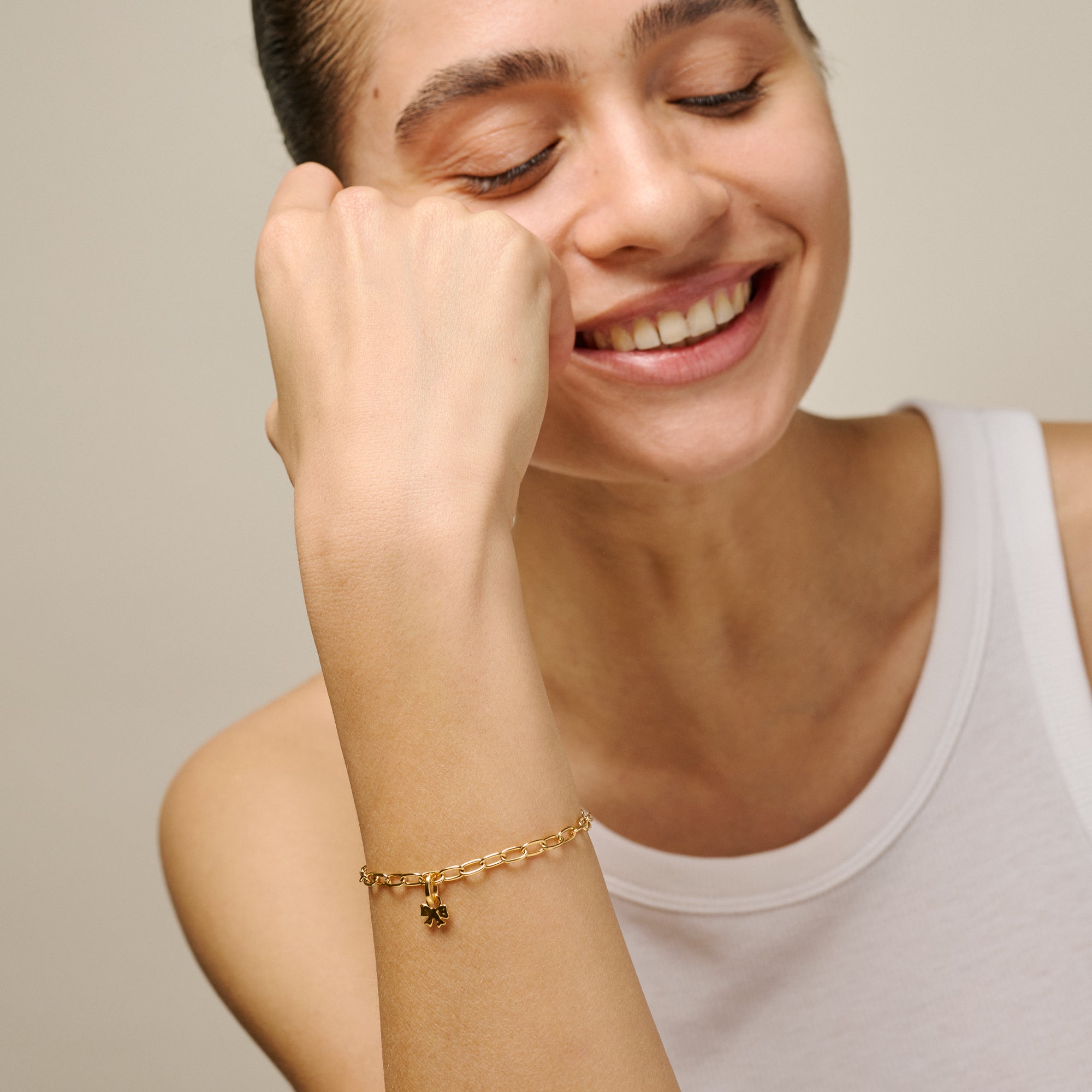 Om smykket: Baby Bow er en sød og feminin charm, der tilføjer en legende elegance til dit look. Den klassiske sløjfeform er et symbol på ynde, lethed og lidt nostalgi – som en lille gave, du bærer med dig hver dag. Lukkemekanismen på Darling Bow charm kan tages af, og med det tilbageværende øsken, kan du sætte sløjfen på en stor del af vores hoops. Vedhænget er især også beregnet til vores armbånd- og halskædeserie kaldet Charm, samt vores simple halskæder og armbånd.