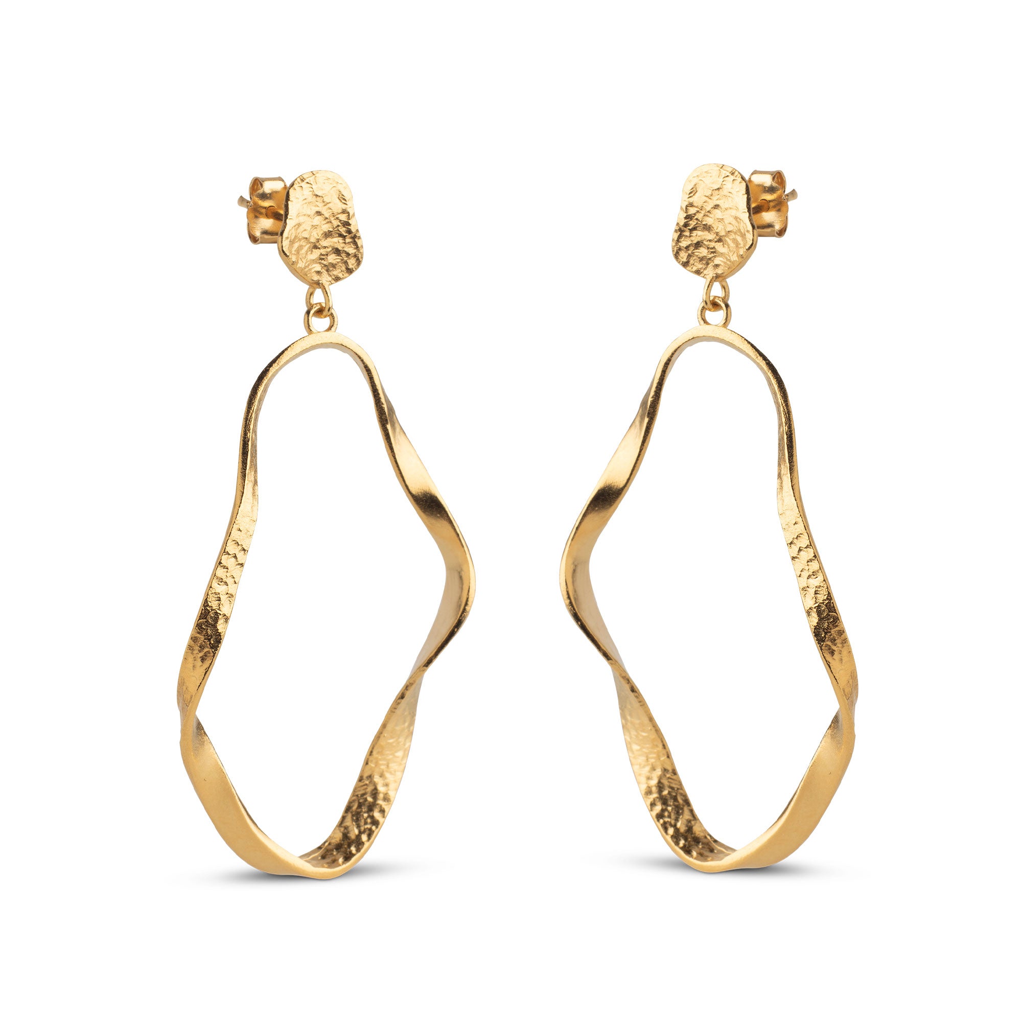 Vores 18 karats guldbelagte Aloma øreringe har et slankt, voluminøst udtryk, med en lethed over sig, der gør disse øreringe til noget helt særligt. Aloma øreringenes artistiske og eksklusive udformning, tilegner dig et par alsidige øreringe, du kan bruge til de fleste lejligheder. Aloma Large er store og legende i deres design. De bølgende flader skaber et dynamisk og levende udtryk, og gør den store ørering uundværlig til den næste festlige lejlighed.