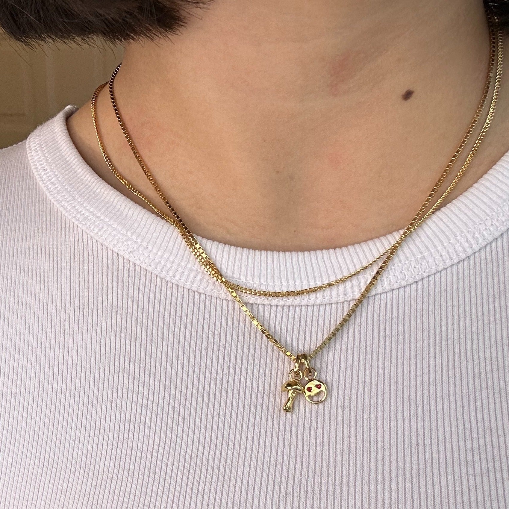 Box chain i 925 sterlingsølv, belagt med 18 karat guld, er en firkantet kædetype, der fremstår cool og anderledes, med et skinnende skær. Box chain halskæden i forgyldt har et langt justerbart stykke, så du nemt kan placere den i forhold til dine andre halskæder. Den guldbelagte Box chain findes i en tyndere kædetype, samt i sølv.