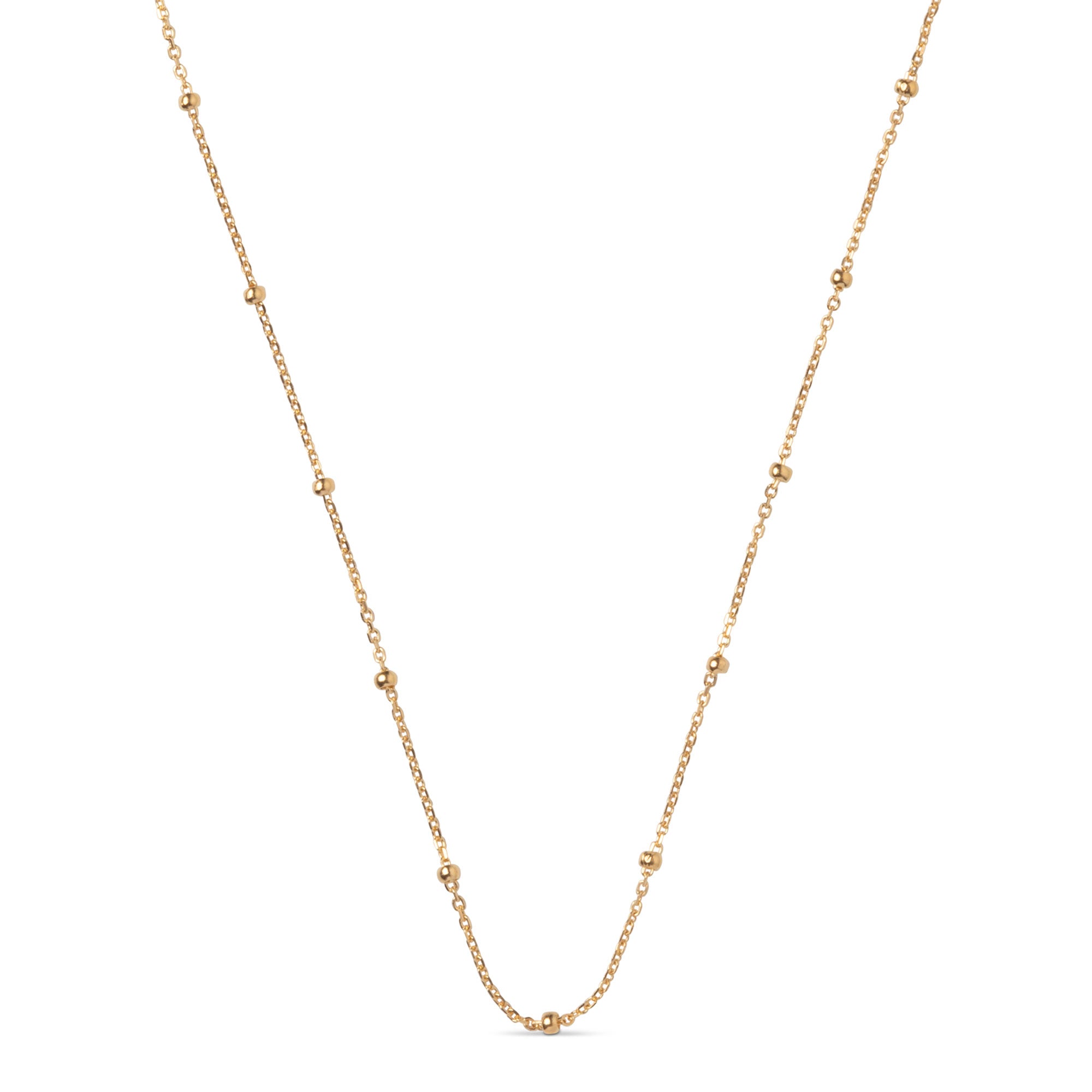 Om smykket: Beaded Chain Necklace er en fin kæde med små guldkugler, der skaber et let og sofistikeret udtryk. Det enkle design gør den til en alsidig hverdagsfavorit – smuk alene og elegant i samspil med andre kæder. Kuglerne tilføjer en diskret detalje, som giver kæden sit særlige præg. Der findes også et matchende armbånd i samme design, samt en version i sølv.