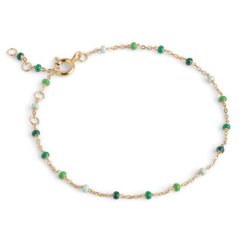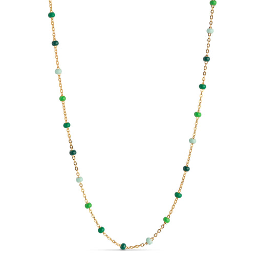 Oplev forårets livlige farver med Spring halskæden. Dette unikke smykke fremhæver grønne og blå nuancer, der minder om blomstrende blomster og frisk løv. Den fine halskæde er ideel til lag-på-lag look og kan kombineres med andre halskæder for at skabe din personlige stil. Spring halskæden er lavet i sterlingsølv og belagt med 18K guld. De håndmalede emaljekugler tilføjer liv til din stil.