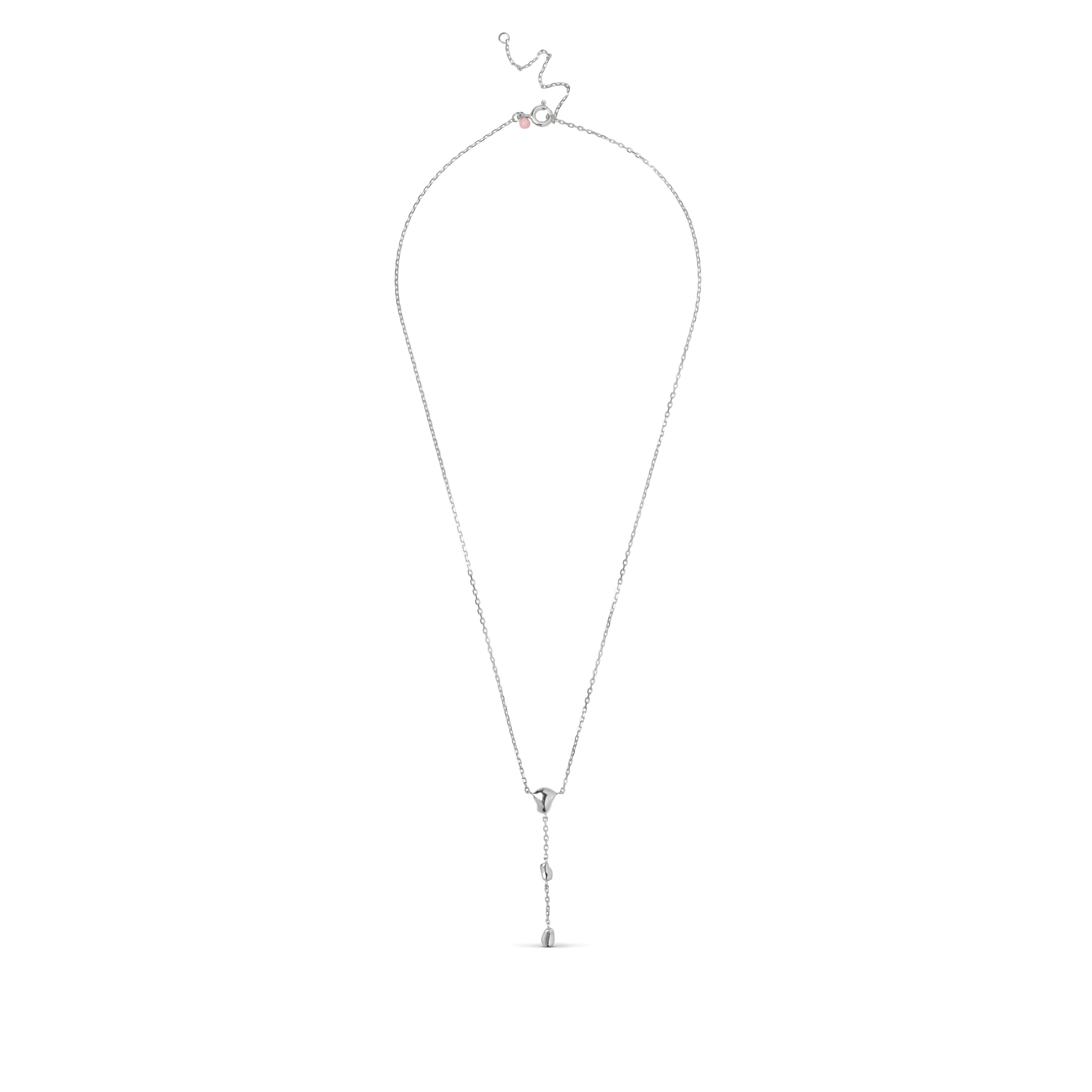 Om smykket: Talia halskæden i sølv har et organisk og elegant udtryk, da de bløde sølvelementer leger smukt sammen med den fine kæde. Designet er en klassisk Y-halskæde, som falder let og flatterende på halsen. De polerede former skaber et luksuriøst og tidløst look. Talia findes også i guld.