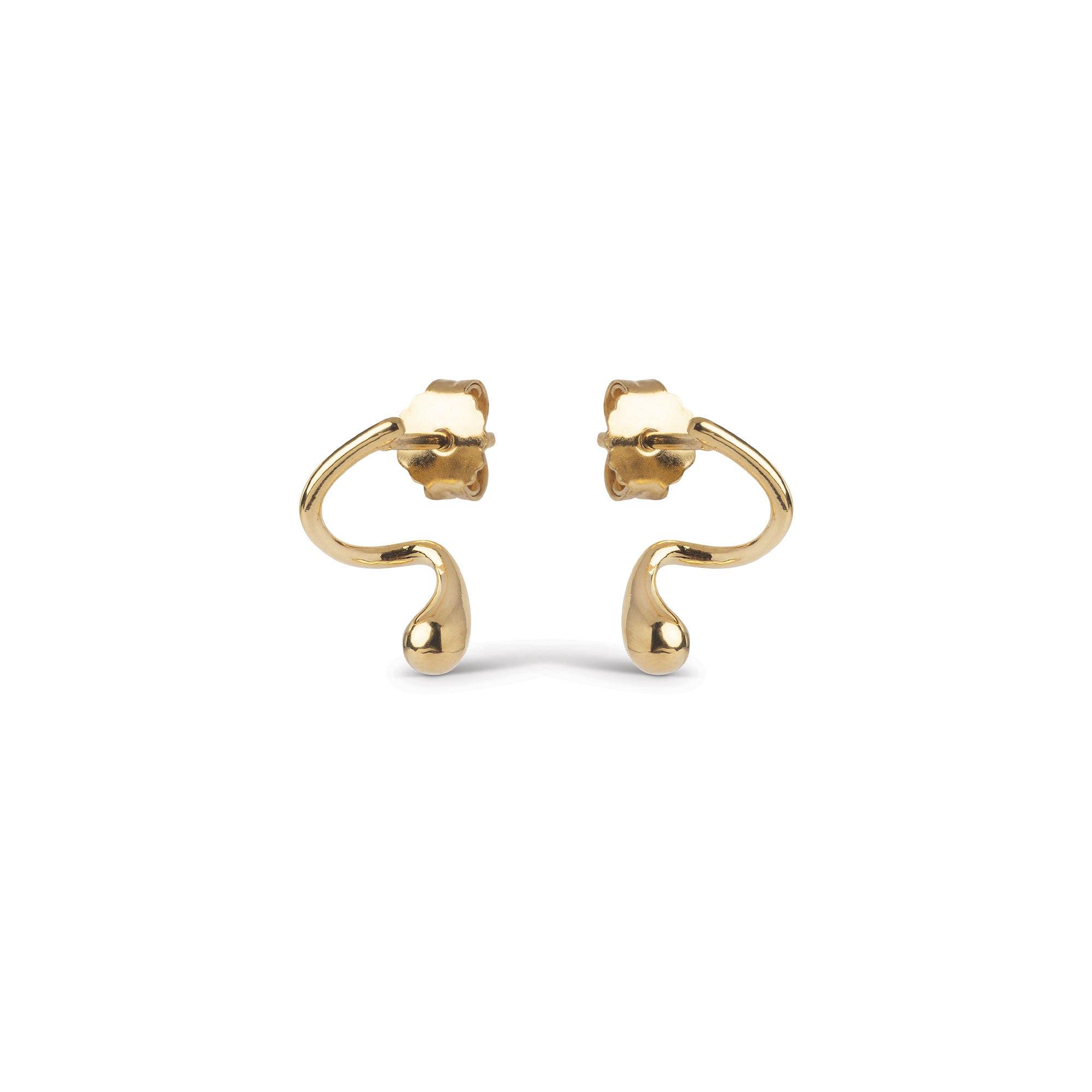 Ivi Stud i guld er noget helt særligt. Med sin skulpturelle, snoede form leger den med perspektiv og placering – som om den går bag om øret – og kombinerer legende design med en elegant, blank guldoverflade.
