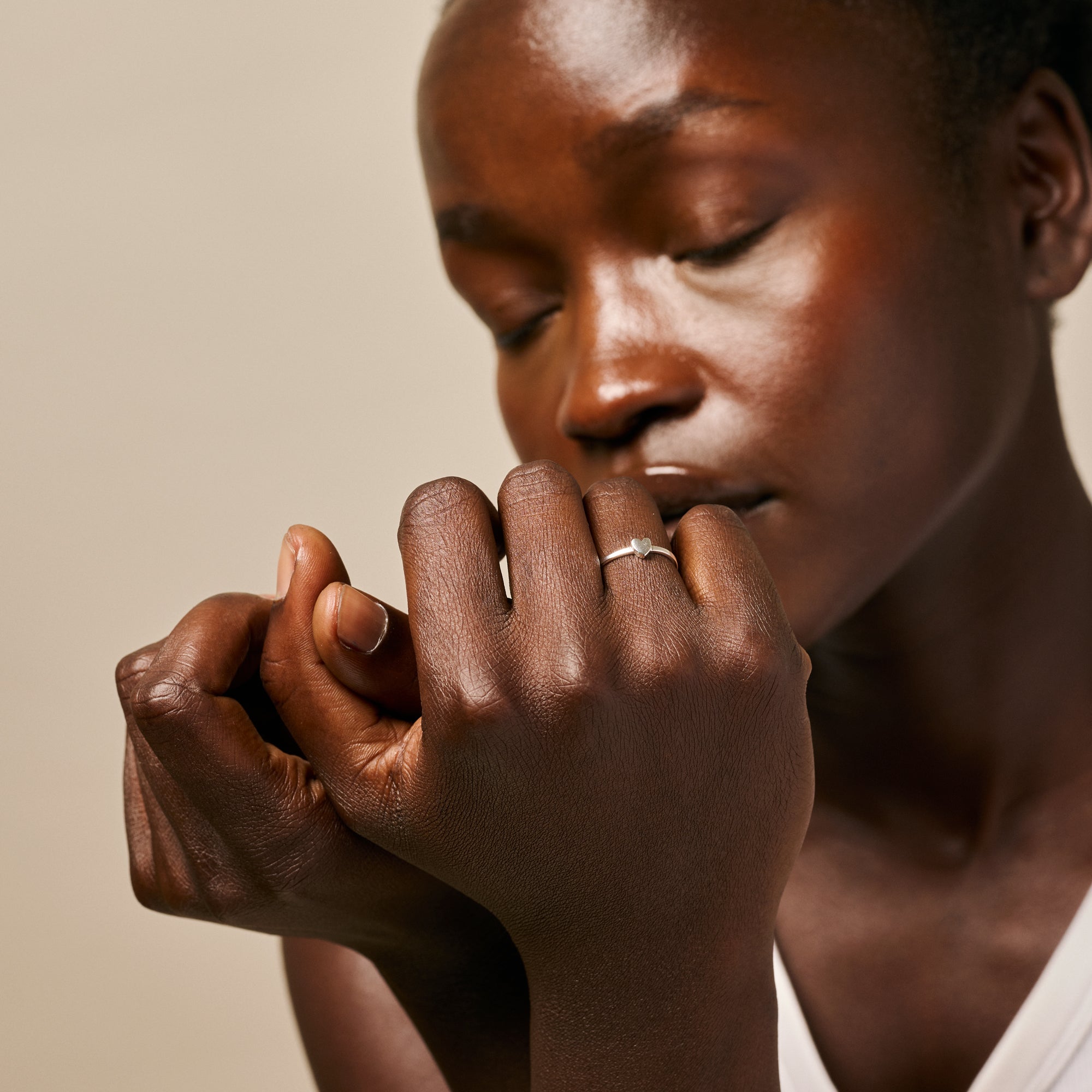 Om smykket: Amore ringen er en sød, underspillet reminder om, det vigtigeste, største, og det vi alle nok snakker aller mest om, kærligheden. Ringen kan gives i gave til en du holder af, og er oplagt at stacke med andre betydningsfulde ringe. Ringen er justerbar, og har et spænd på fire størrelser, så du nemt kan tilpasse den dine fingre. Amore ringen i sølv, er mere nedtonet og stilren i sit udtryk, og dens kølige udtryk går godt sammen med alle tøjfarver og hudtoner.