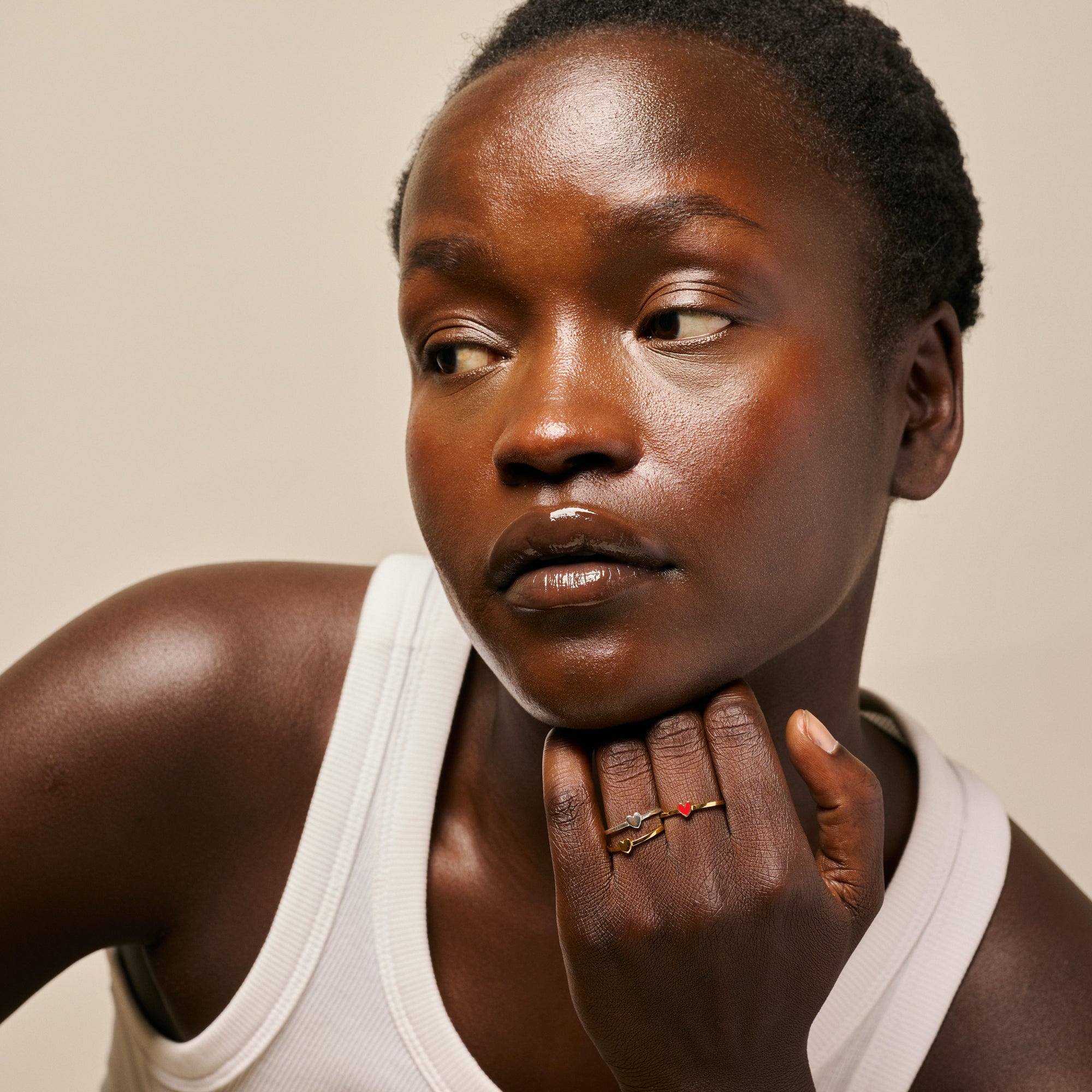 Om smykket: Amore ringen i guld, er mere nedtonet of stilren i sit udtryk, og går godt sammen med alle tøjfarver og hudtoner.