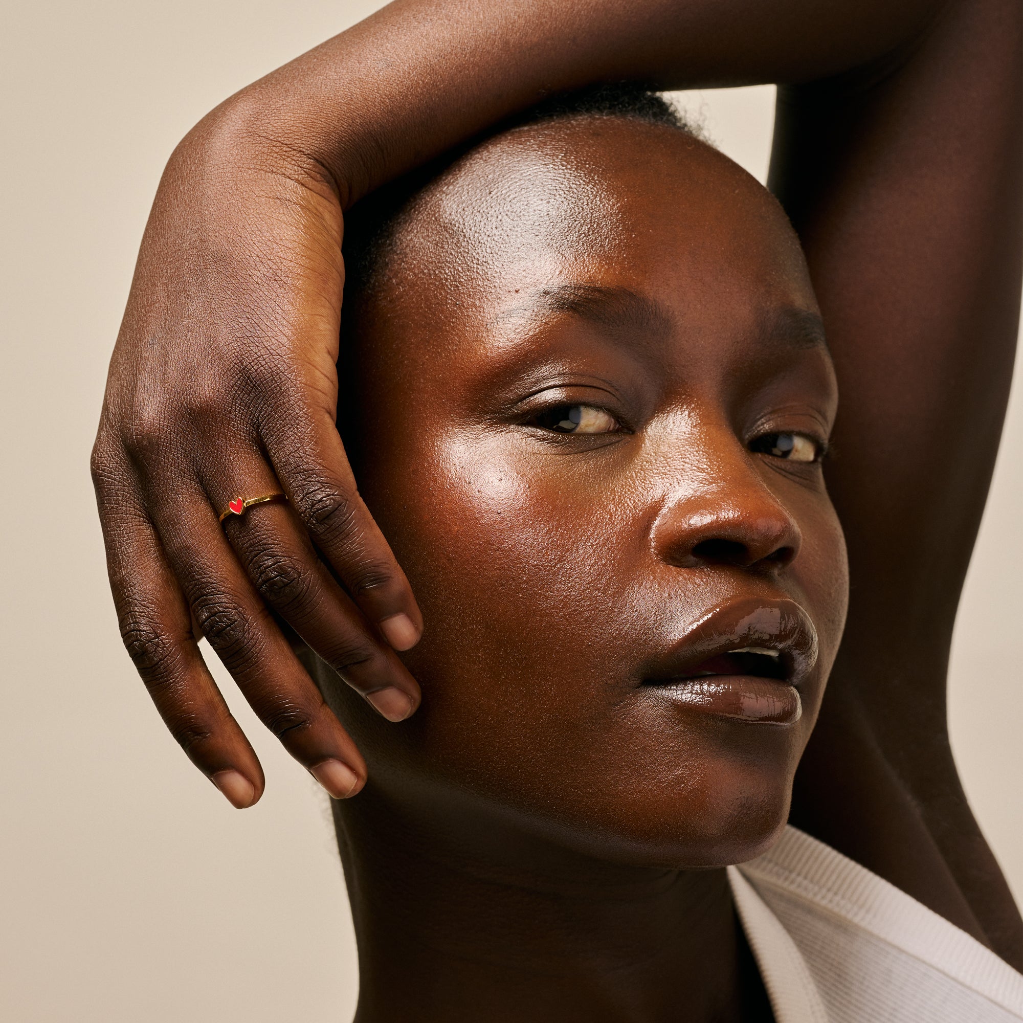 Om smykket: Amore ringen i rød, har kærlighedens varme farve, og understreger på den måde ringens betyding ekstra godt. Obs: Vær opmærksom på IKKE at bære vores emalje styles i bad, når du sover, og for tæt på parfumer og cremer, da emaljen kan ændre farve og struktur.