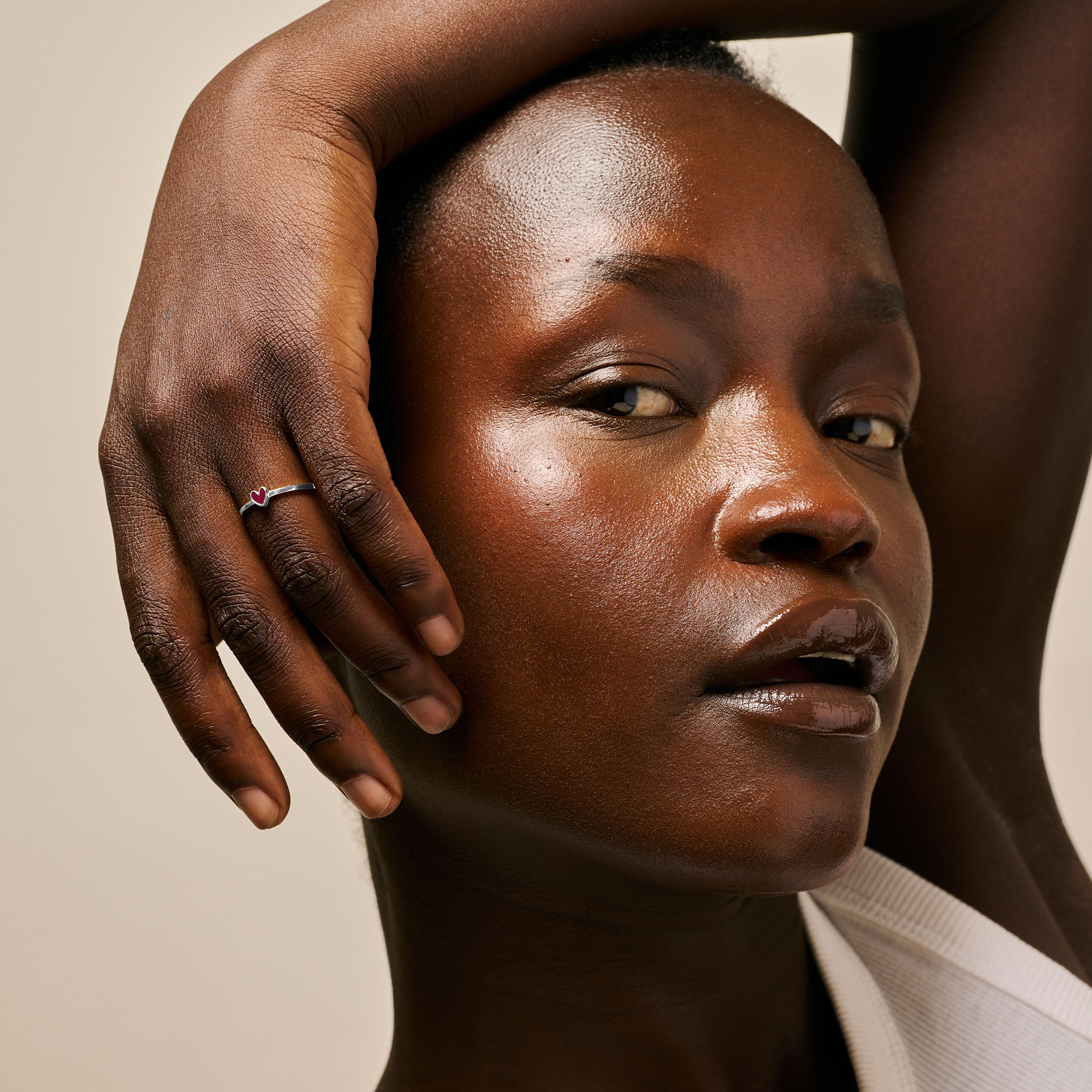 Om smykkerne: Amore-ringen er en sød, subtil påmindelse om den vigtigste, største og hvad vi sandsynligvis alle taler mest om, kærlighed. Ringen kan gives som gave til en du holder af, og er ideel til at stakke med andre meningsfulde ringe. Ringen er justerbar, med en spændvidde på fire størrelser, hvilket gør det nemt at passe til dine fingre. Amore-ringen i sølv er mere dæmpet og slank i sin udtryk, og dets kølige udseende passer godt sammen med alle tøjfarver og hudtoner. Den varme bordeaux-farve er et godt alternativ til vores andre klassiske røde farve. Den komplementerer huden og sølvfarven perfekt og tilføjer en subtil og sofistikeret drejning.