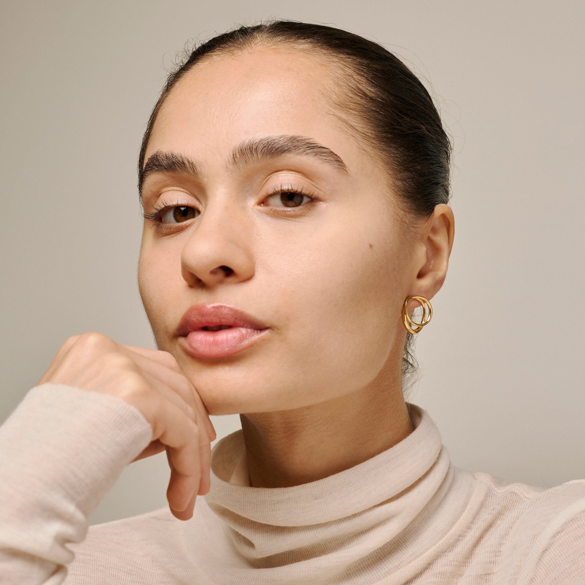 Om smykket:Bellu Stud er en elegant og organisk fortolkning af den klassiske cirkel. De to bløde ringe er let snoede og smyger sig om hinanden i et harmonisk og moderne design. Ørestikkerne har et skulpturelt udtryk, men er stadig enkle nok til at blive brugt til hverdag. Et smykke der balancerer det sofistikerede med det cool."