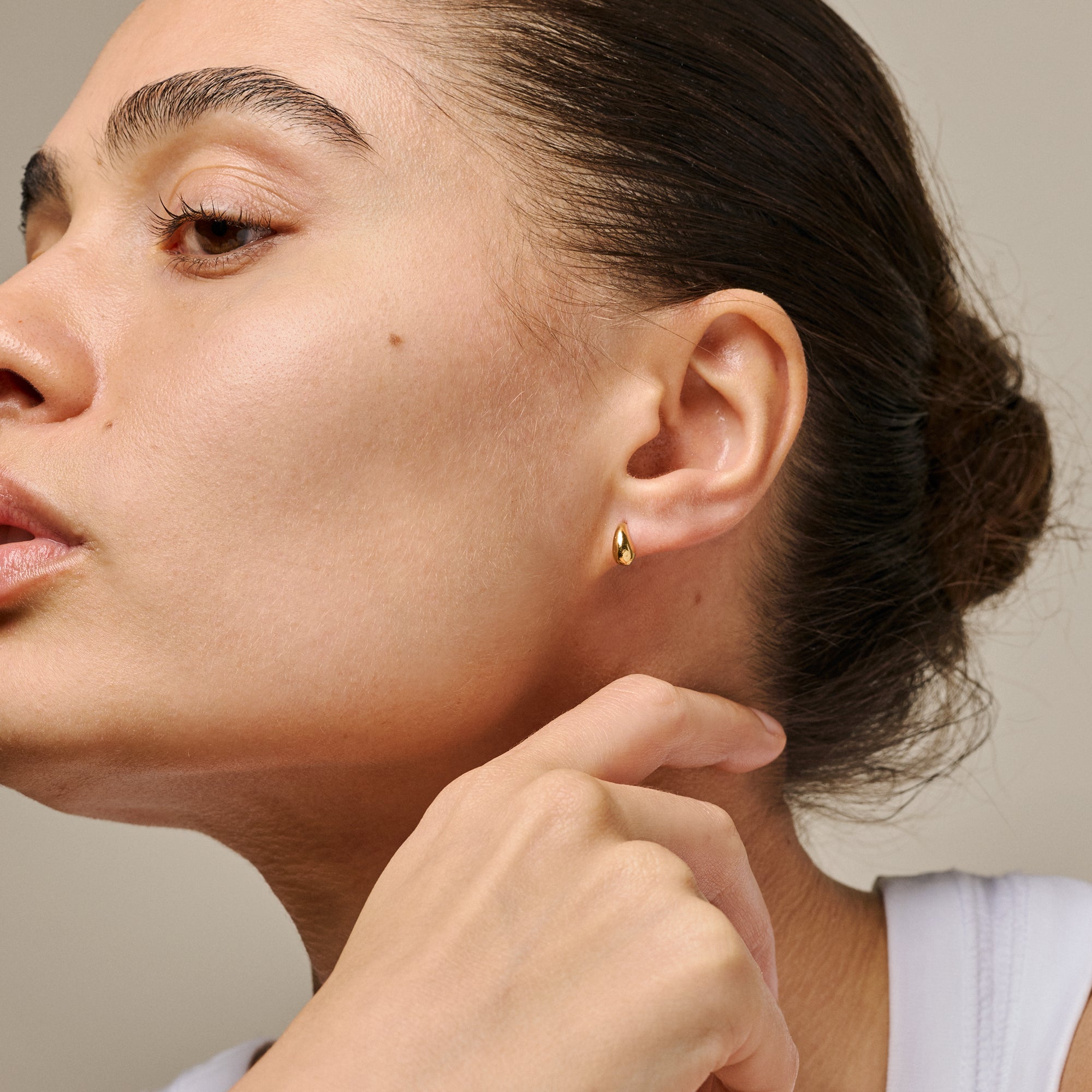 Om smykket:Sana Stud, i guld, er en elegant ørestik med en dråbelignende, organisk form. Det minimalistiske design og den blanke finish skaber en rolig, feminin balance. Sana fungerer smukt alene, men kan også mixes med andre ørestikker for en personlig og moderne styling. Du finder også Sana stud i en ren sølv-udgave.